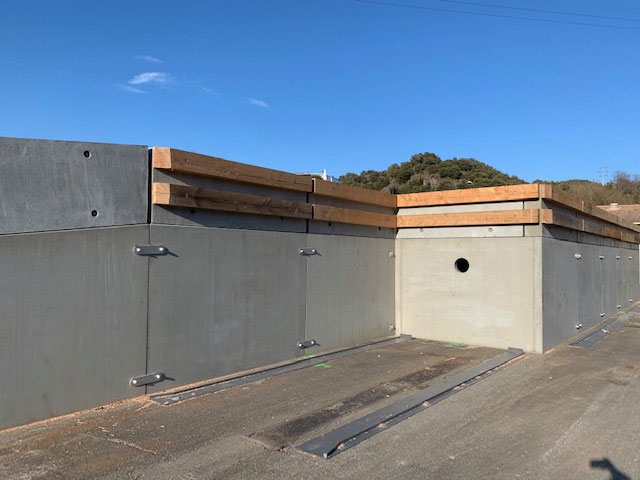 Replacing an outdated modular metal waste management facility presenting safety hazards. The existing bay was taken to a recycling unit and replaced by a safer, bigger, modular bay with waste storage space under the bay.